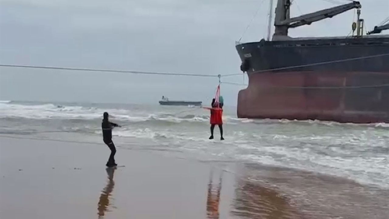 İstanbul Sarıyer Türkeli Demir Sahası’nda karaya oturan 100 metre boyundaki ‘Razouk’ isimli kargo gemisinde rahatsızlanan kaptan, Kıyı Emniyeti Genel Müdürlüğüne bağlı kara tahlisiye ekibinin varagele (iki nokta arasına sağlam şekilde gerilen bir halat hattı üzerinde hareket eden makara sistemi) adı verilen yöntemle gerçekleştirdiği operasyonla güvenli şekilde tahliye edilerek sağlık ekiplerine teslim edildi. O anlar kameraya yansıdı.